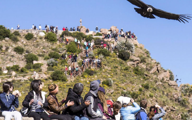 - 06:30 We will go to the viewpoint of the cross of the condor, strategic observation point of the canyon and the spectacular flight of the condor. On the way back we will stop in the villages of Pinchollo, Maca and Yanque; that have beautiful colonial churches, as well as in the viewpoints of choquetico and antahuilque, from where we will observe the impressive andenería of the valley, the pre-Inca tombs and models.