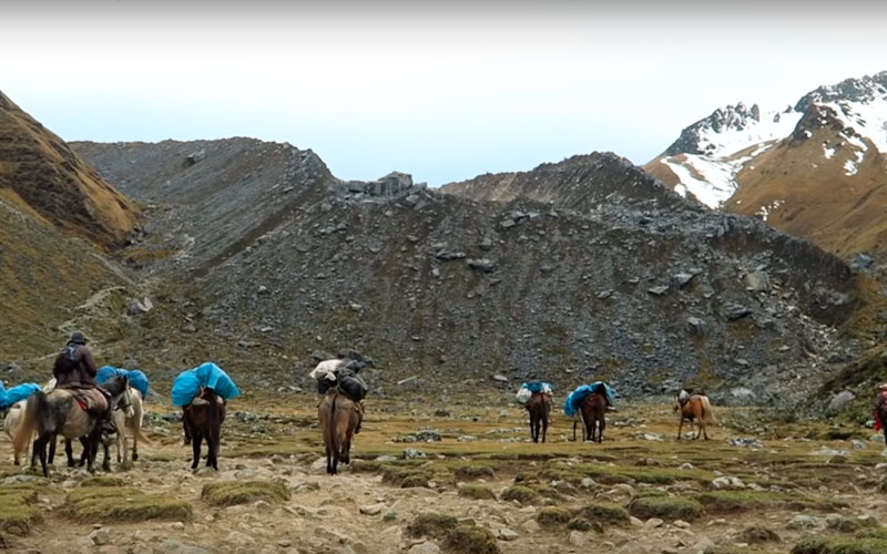 - We will wake up at 5:00 am and eat breakfast from 5:30 am to 6.20 am then continue our hike for 4 hours until the Salkantay Pass located at 4650 m/ 15,250 ft. At the Salkantay Pass we will visit two important historical points (Salkantay-Pampa and Soyroq’ocha). Here we will make a small offering of coca leaves to Pachamama and Apu Salkantay. We will also talk about the history and religion of the Incas.